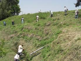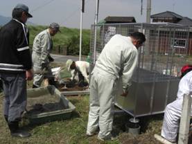 平成22年5月2日 春の道路愛護(農道補修、砂利入れと草刈り)と上の宿溜池と柳溜池の堤防の草刈りが行われました。また当日、恵蘇宿グラウンドとゲートボール場近辺の草刈りが行われました。また1組においては、生ごみ回収施設の設置が行われました。