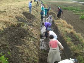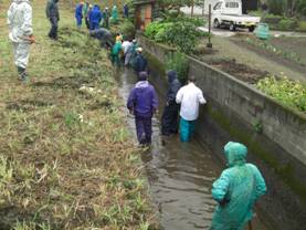 平成22年6月13日(日) 毎年田植え前に行われる溝さらえ(開水路の点検、清掃)を行いました。今年も非農家の方も参加して 行われました。夜、推進委員会議がありました。