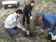 1月21日 役員3名でユンボを使って網張農道の地ならしをする。