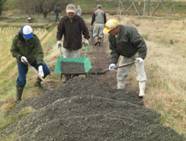 1月22日 役員・推進委員17名で網張の農道補修Aと砂利入れBと菖蒲園の手入れをするC。