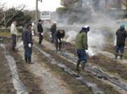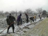 2月18日 役員・推進委員10名で雪降る中、波掛の農道補修(砂利入れ)Eを行う。