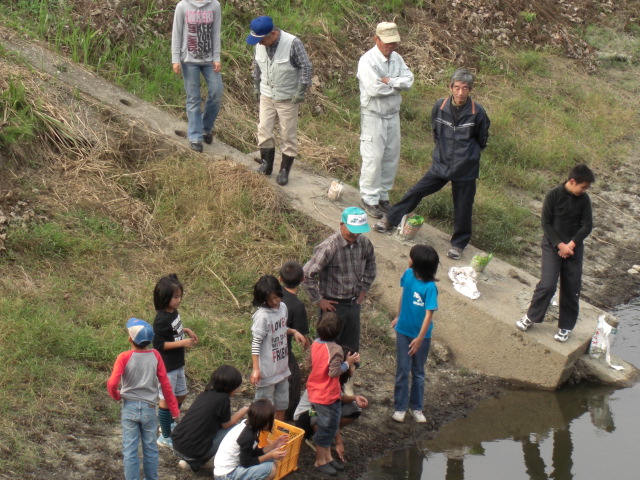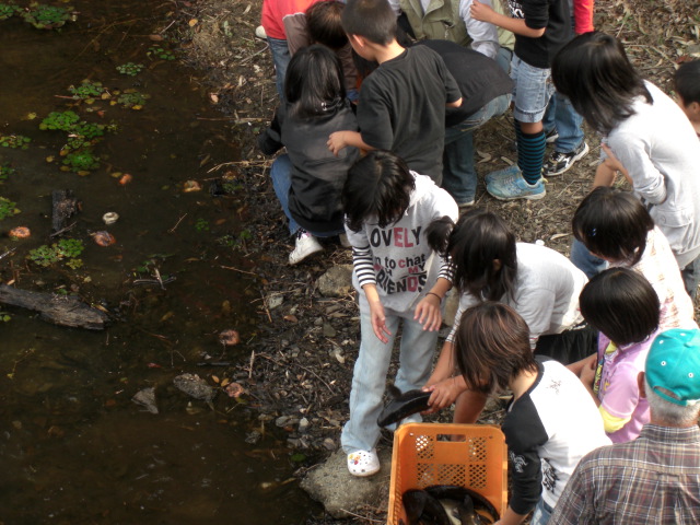 上の宿・柳溜池の鯉の放流は、さかな取りのためと、生態系を守るために行いました。