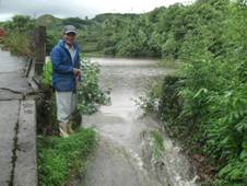 6月30日、大雨で足立チヨさん宅下の側溝が 7月10日、七熊さんと関屋さんで上の宿