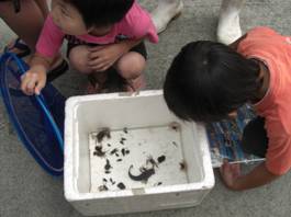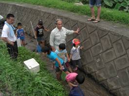 8月1日、小学生による金場川の生態系調査が行われました。
